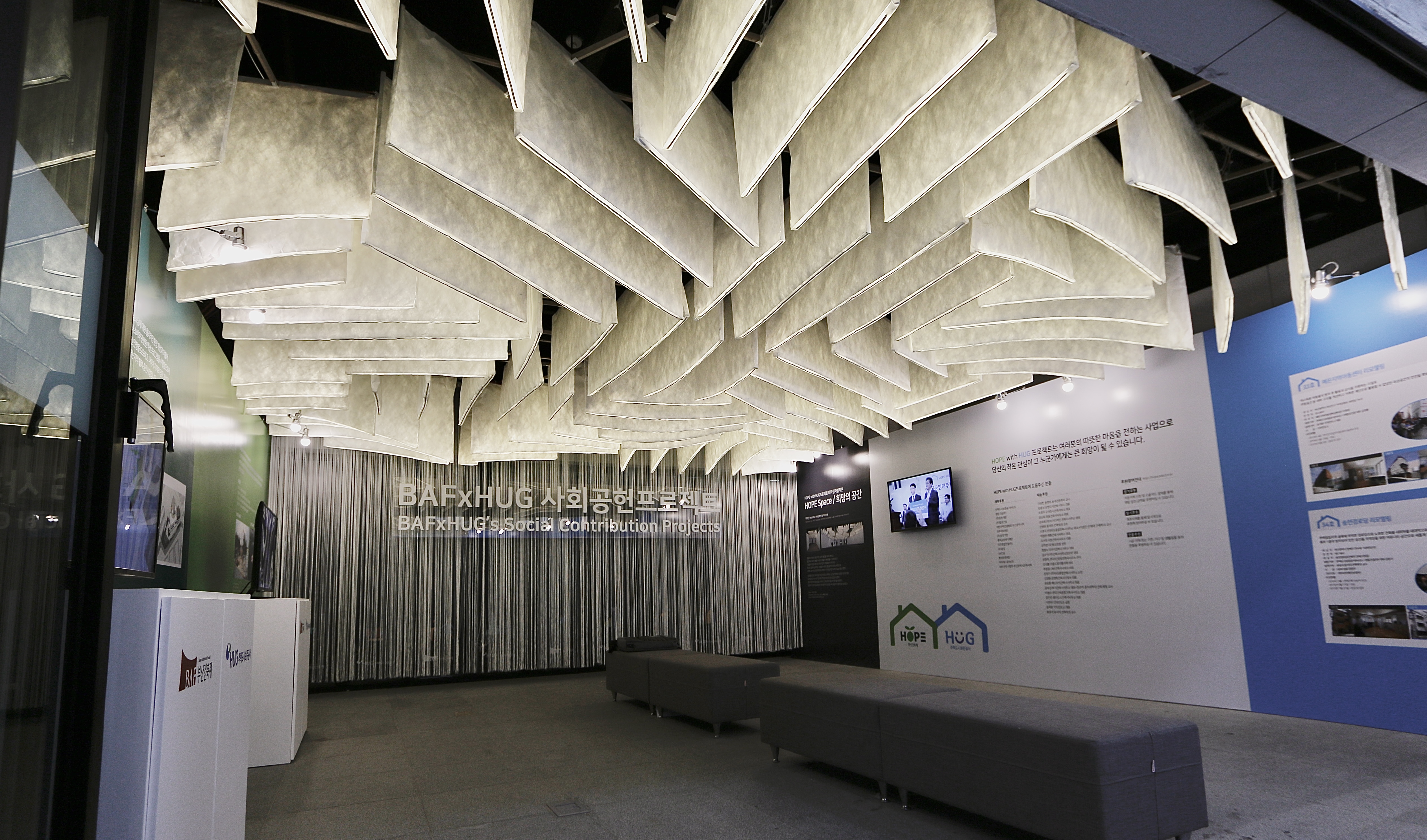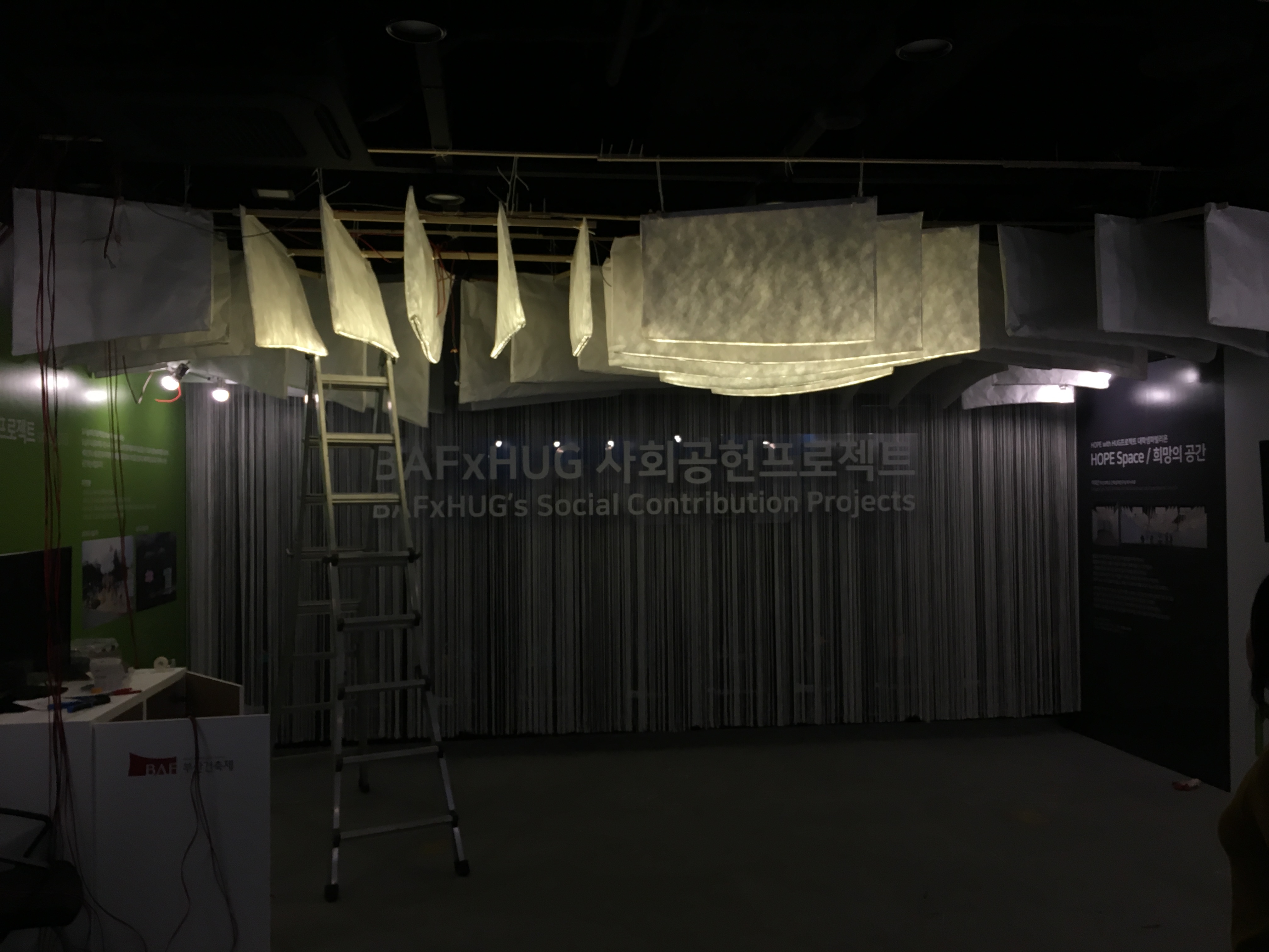 It is an installation project on the ceiling of BAFxHUG exhibition room in the BAF 2019. To light up the whole LED strips in each unit and control its brightness, a light control unit which consists of an Arduino mega board and MOSFETs, a 2k power supply is included in the installation. The entire process from design to construction took 400 man-hours.