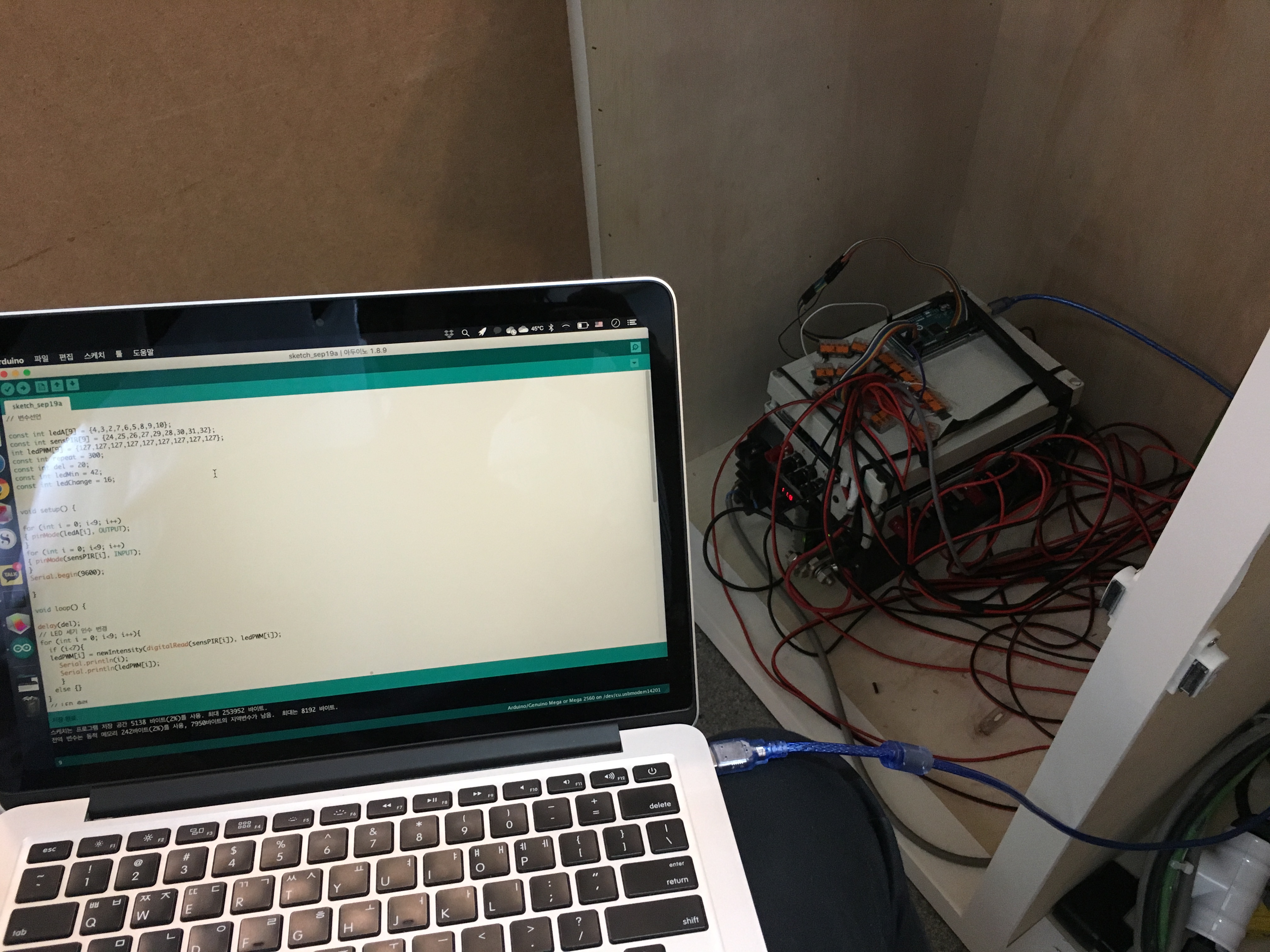 Material: Tyvek, LED strip, Arduino mega, Motion sensor, MOSFET, 2k power supply