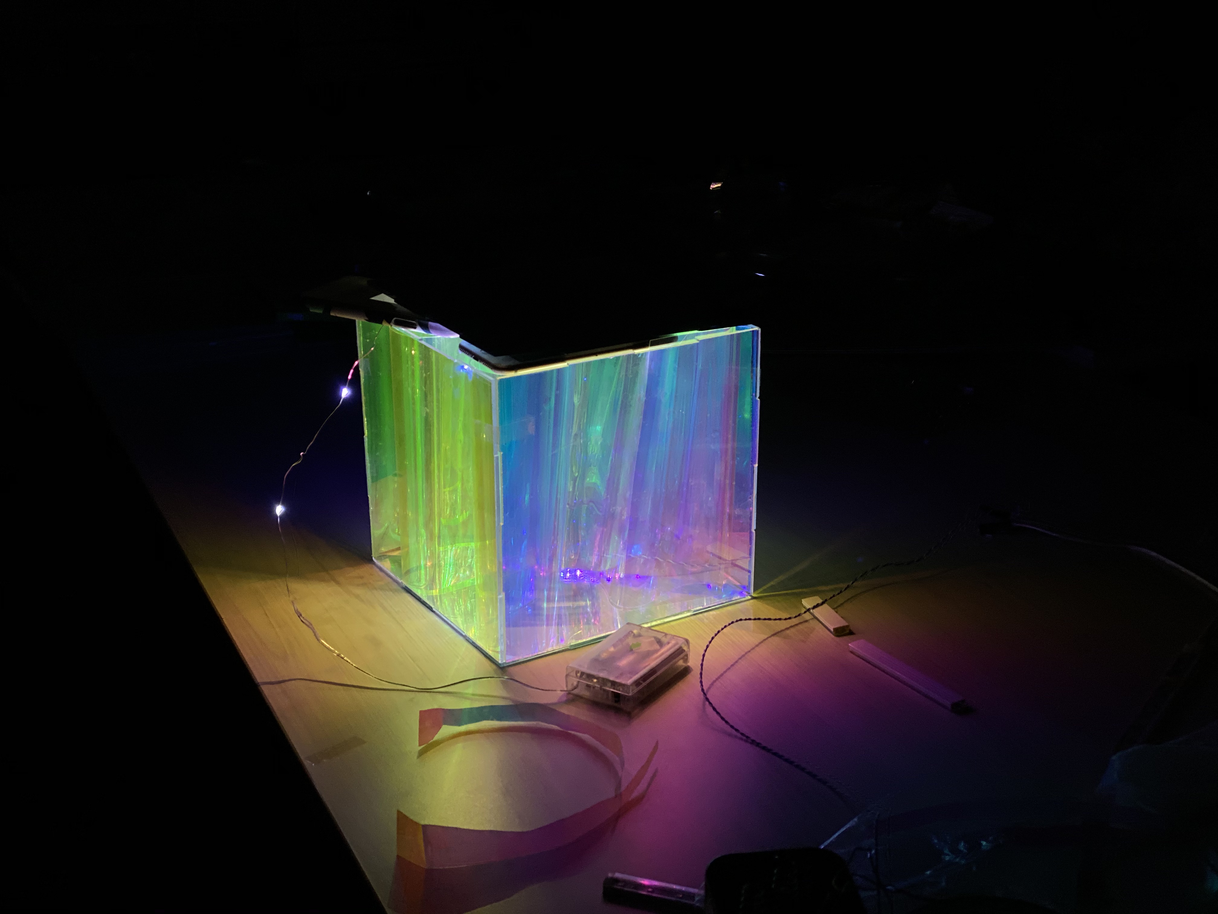 Material: Acrylic sheet, Mirror film, Dichroic film, LED strip, Wago, Cable, Arduino mega, Light controller