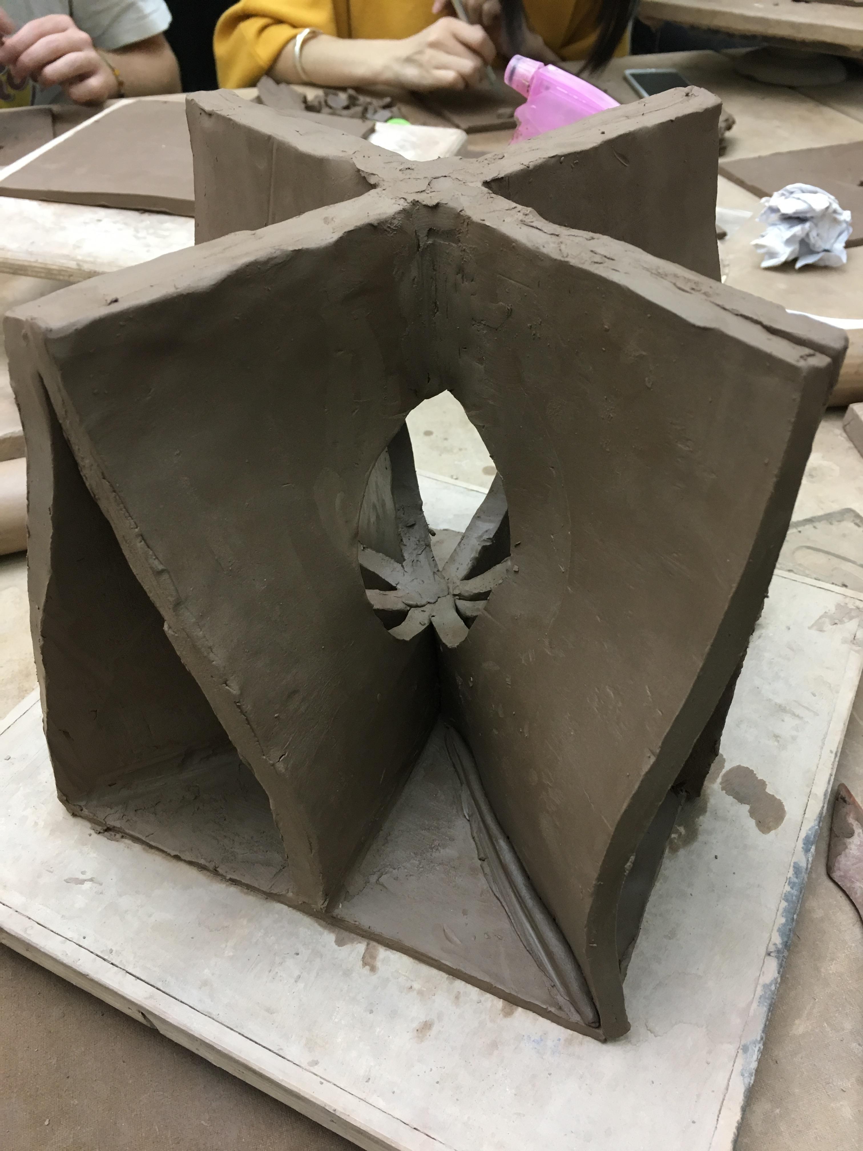 Digital models were uses to create its form. As it has many twisted leaves, there should be templates to cut flat clay sheets into precise pieces.